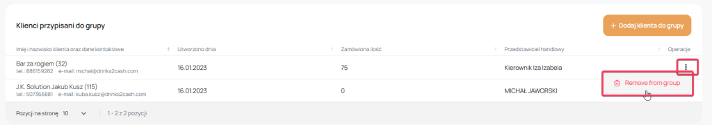 Niektórzy klienci mogą być przypisani do innych grup , w takie sytuacji pamiętaj że dodając go do grupy bieżącej zostanie usunięty z poprzedniej |