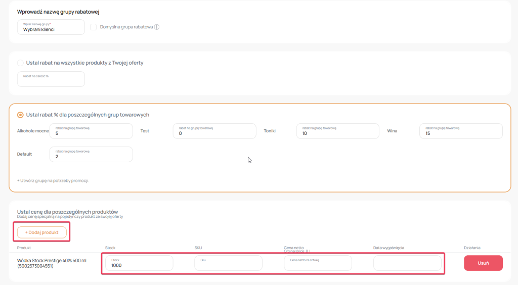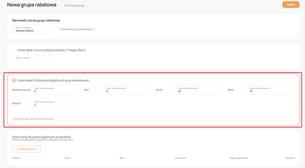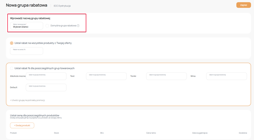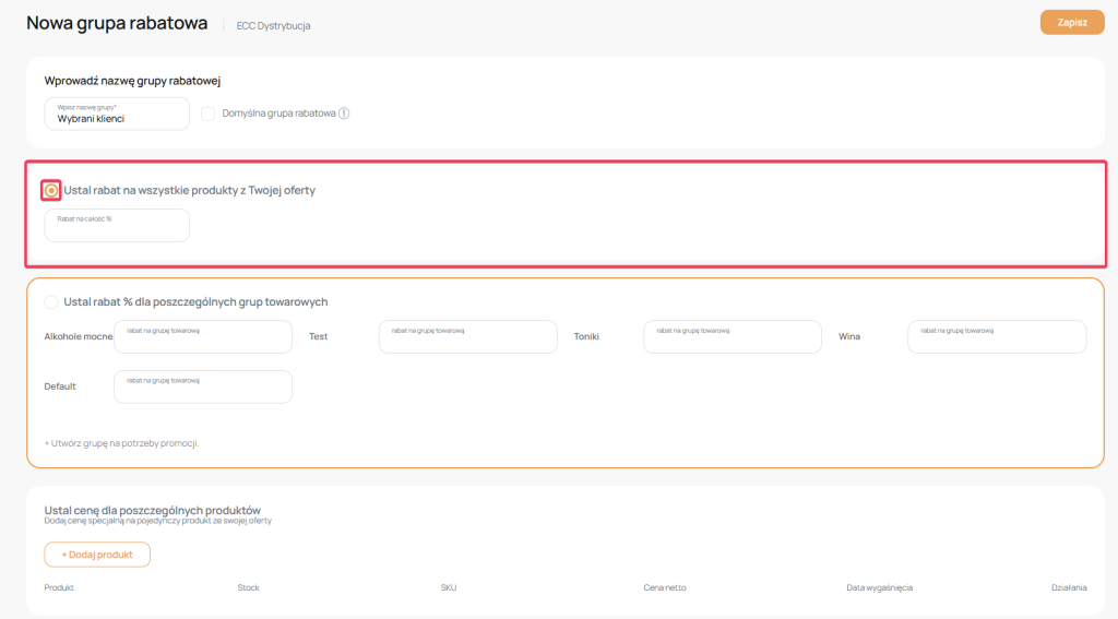 – cena jaką chcesz zdefiniować przy tej grupie rabatowej