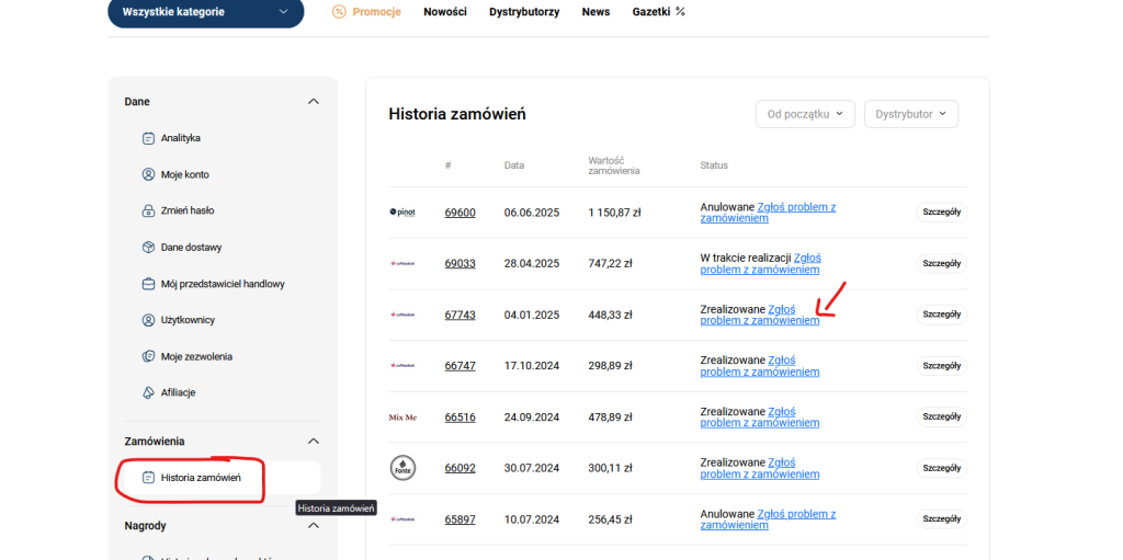 2. Zgłoś problem z zamówieniem na swoim koncie.