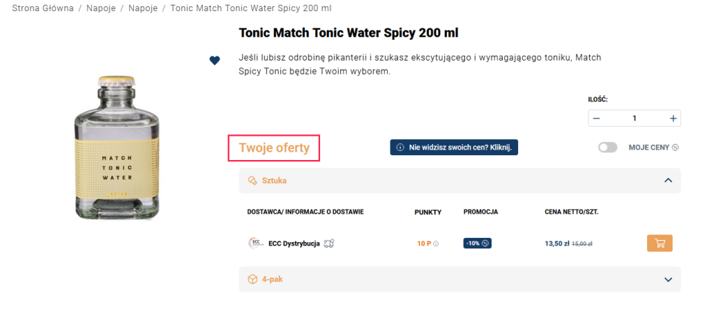 👀 Gdy dystrybutor wprowadzi dla Ciebie ceny lub rabaty indywidualne, pojawią się one na kartach produktu jako Moje oferty,