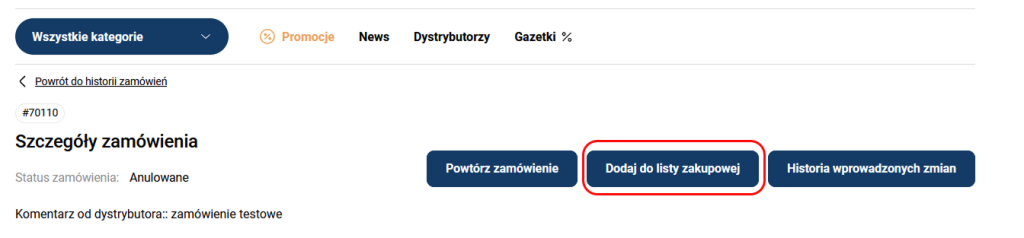 - Na karcie zamówienia wybierz dodaj do listy zakupowej.