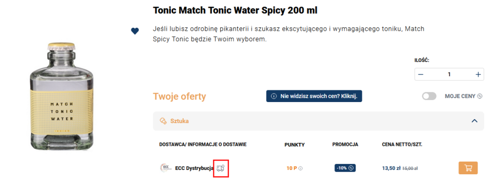 1.Na karcie produktu, klikając znaczek ciężarówki przy wybranym dystrybutorze.