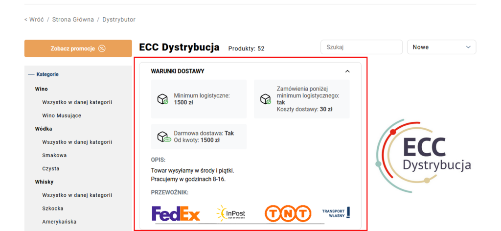 Warunki dostawy (tj. minimum logistyczne, koszty dostawy i czas realizacji) każdego dystrybutora można sprawdzić w dwóch miejscach: