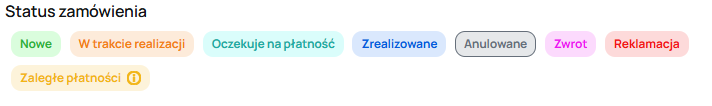 - zaległe płatności – wybierz ten status jeśli klient ma przeterminowane płatności. System poinformuje klienta, że zamówienie jest wstrzymane i zostanie anulowane po 7 dniach, jeśli status się nie zmieni.