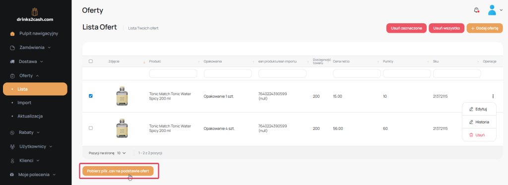 Aby edytować całą ofertę którą posiadasz na drinks2cash.com za pomocą jednej tabelki możesz wykorzystać narzędzie, które importuje cenniki.